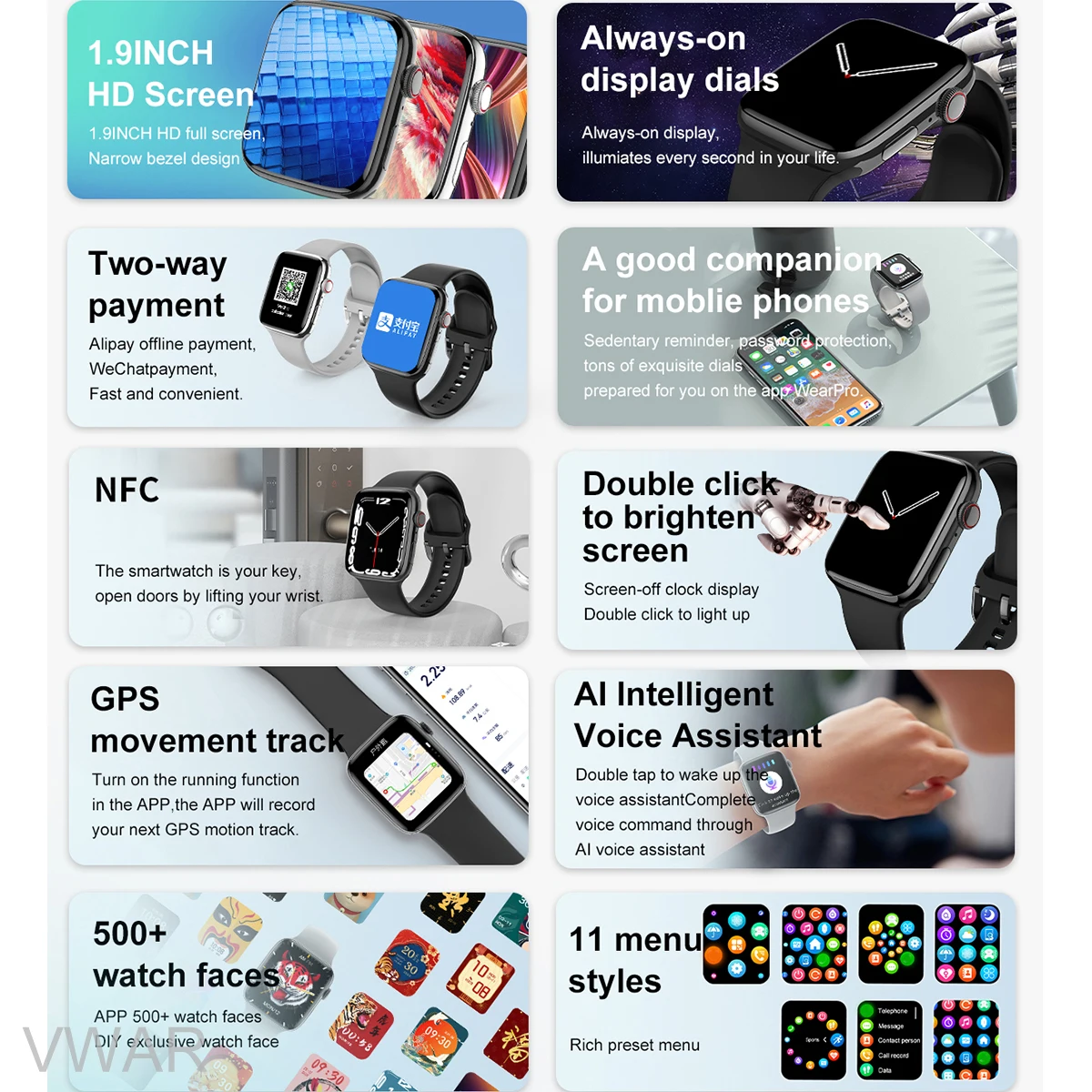 Vwar Dt7 Max Smart Watch Series 7 1 9 Inch Screen Nfc Gps Tracker Bluetooth Call Men Women 45mm Smartwatch For Ios Xiaomi